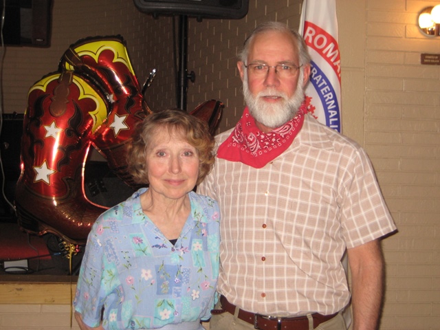 | Enedina and Don Clark always have the best match in clothing. Enedina is quite a proficient seamstress in addition to being a great dancer. | Former officers Barbara and Michael Bergmire strike a fitting pose for the picture. Both Barbara and Michael are currently taking button box accordion lessons, and hope to play with the Button Box band as their skills mature. |